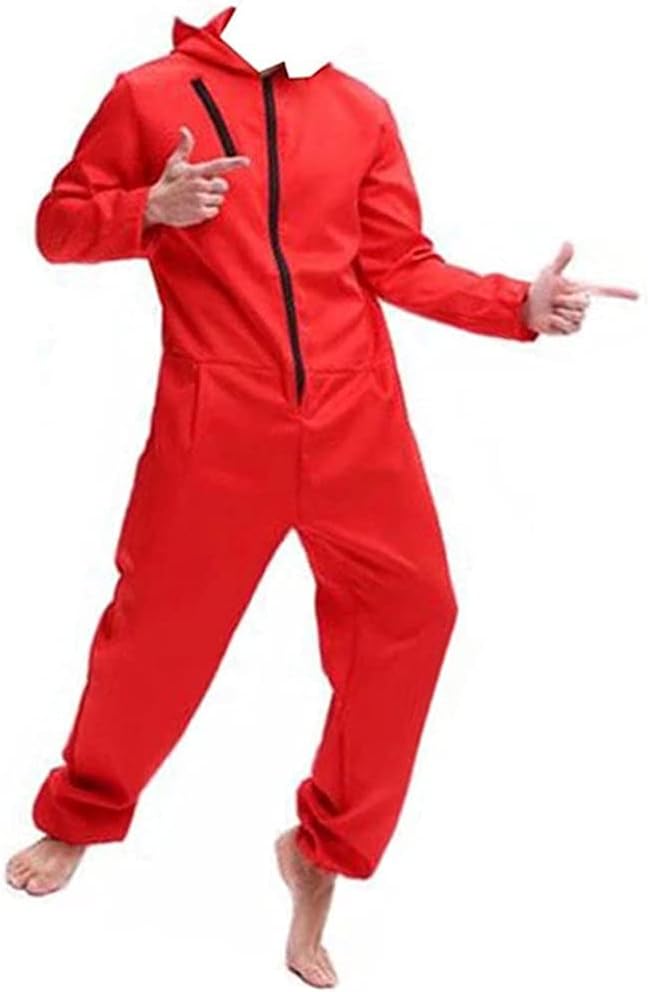 Costume de Partenaire d’Halloween – Voleur de Banque – Carnaval – Combinaison Avec Masque et Pistolet Jouet – Cosplay Adulte – Rouge – Taille M