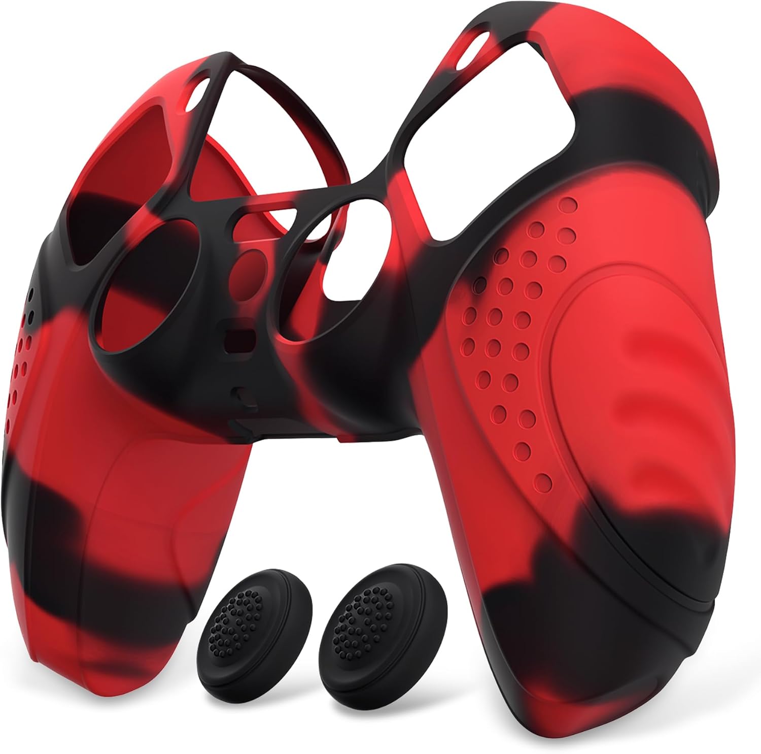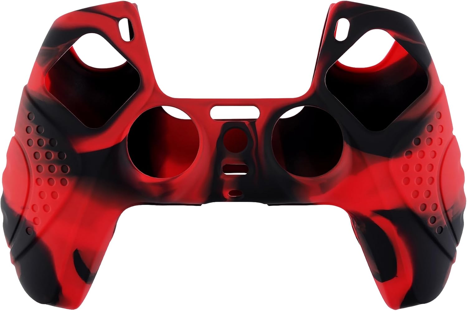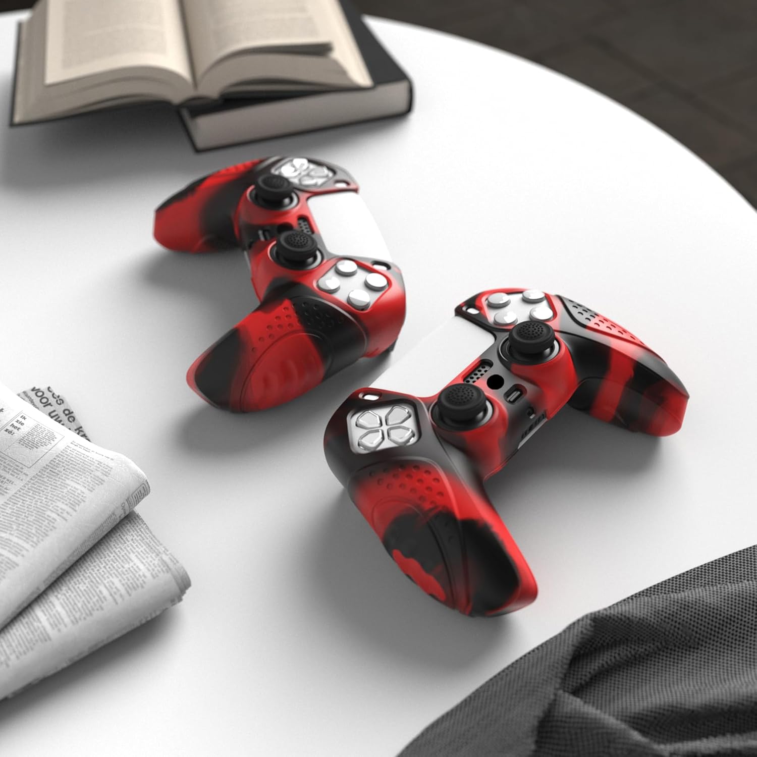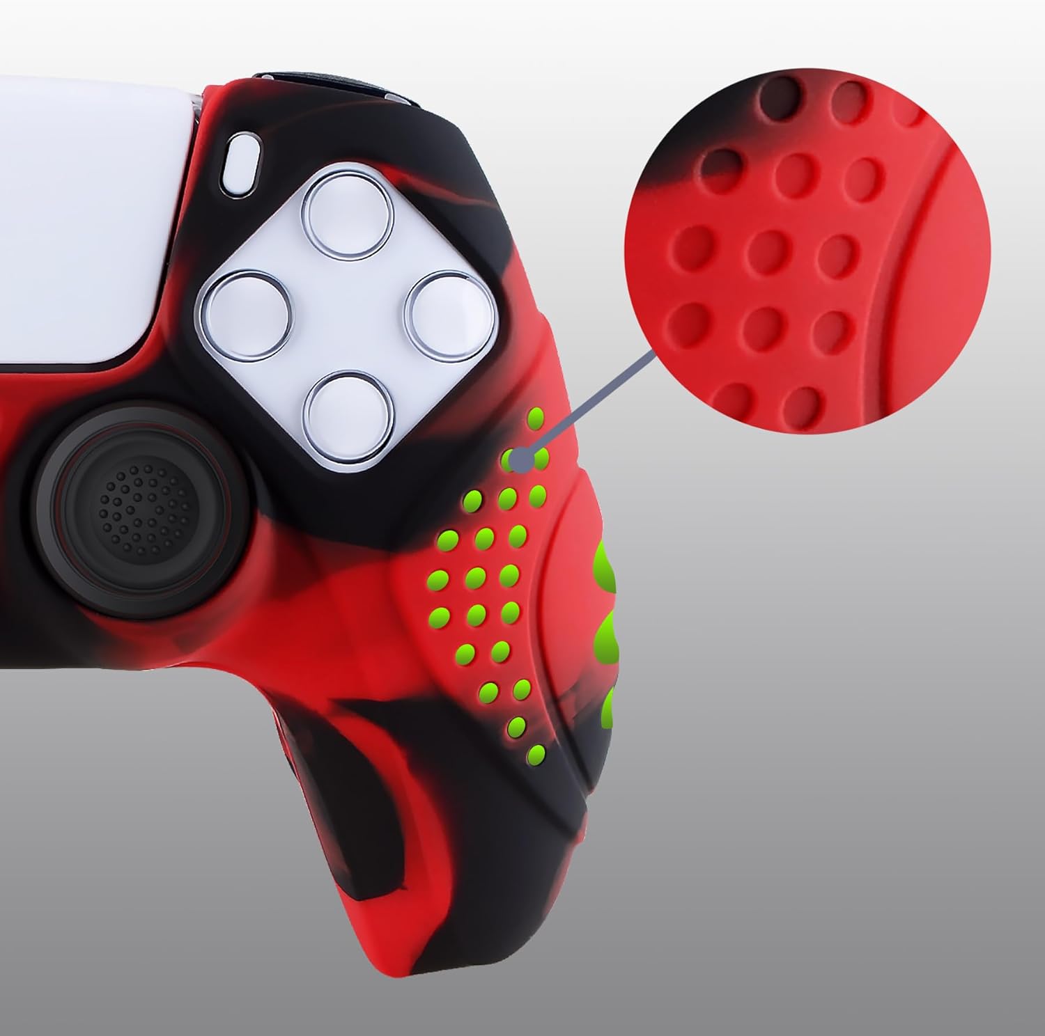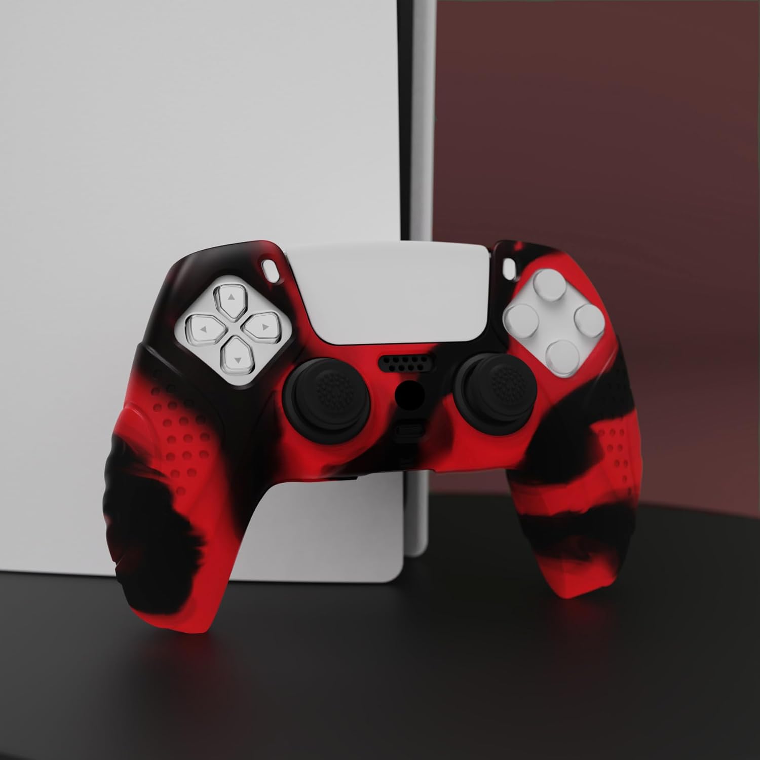 eXtremeRate PlayVital Protection Manette pour ps5 Coque,Housse Silicone avec Capuchon Joystick pour ps5 Controller Accessoire Cover Skin Antidérapante-Rouge & Noir,Édition Guardian