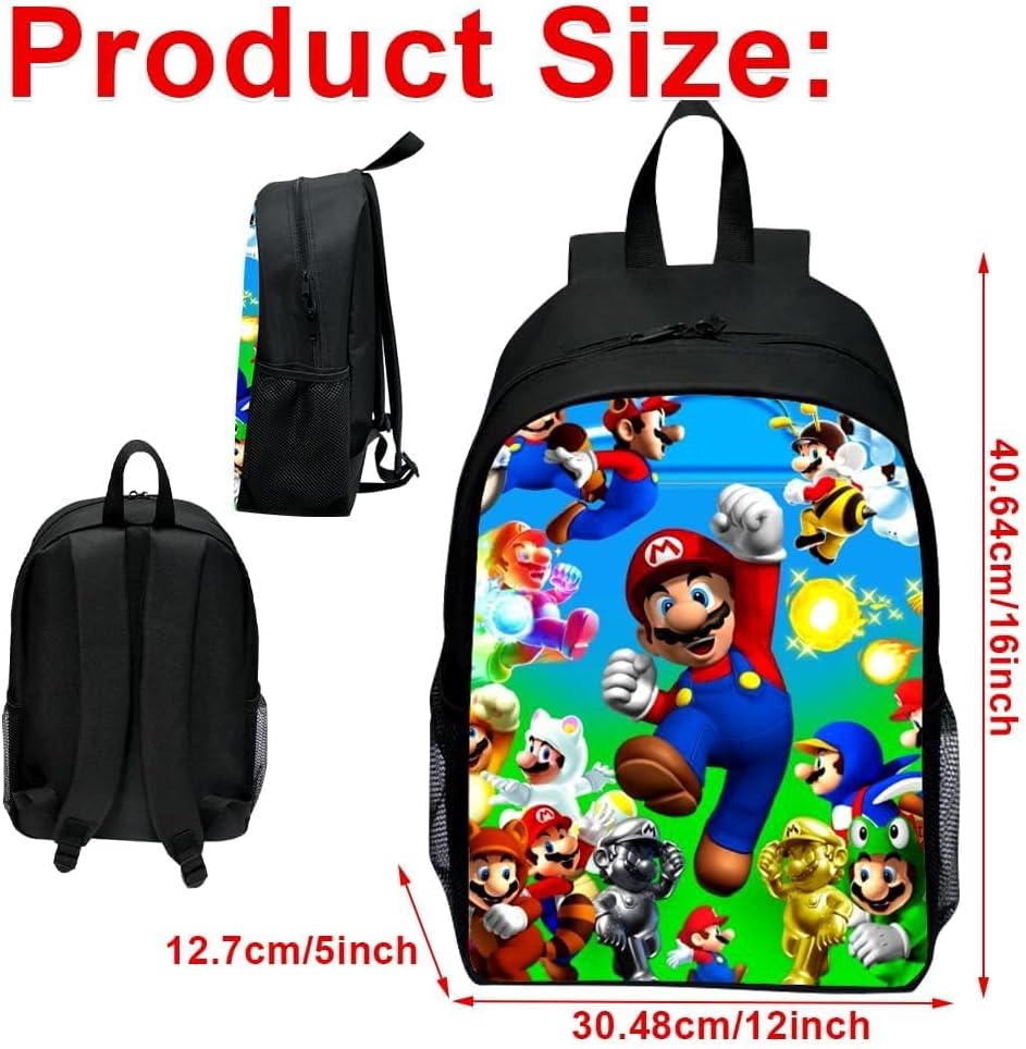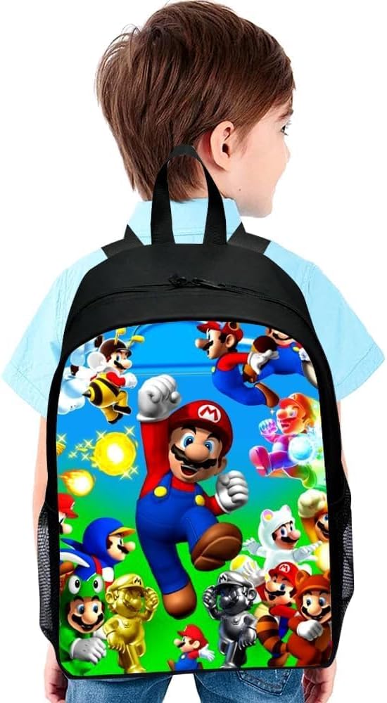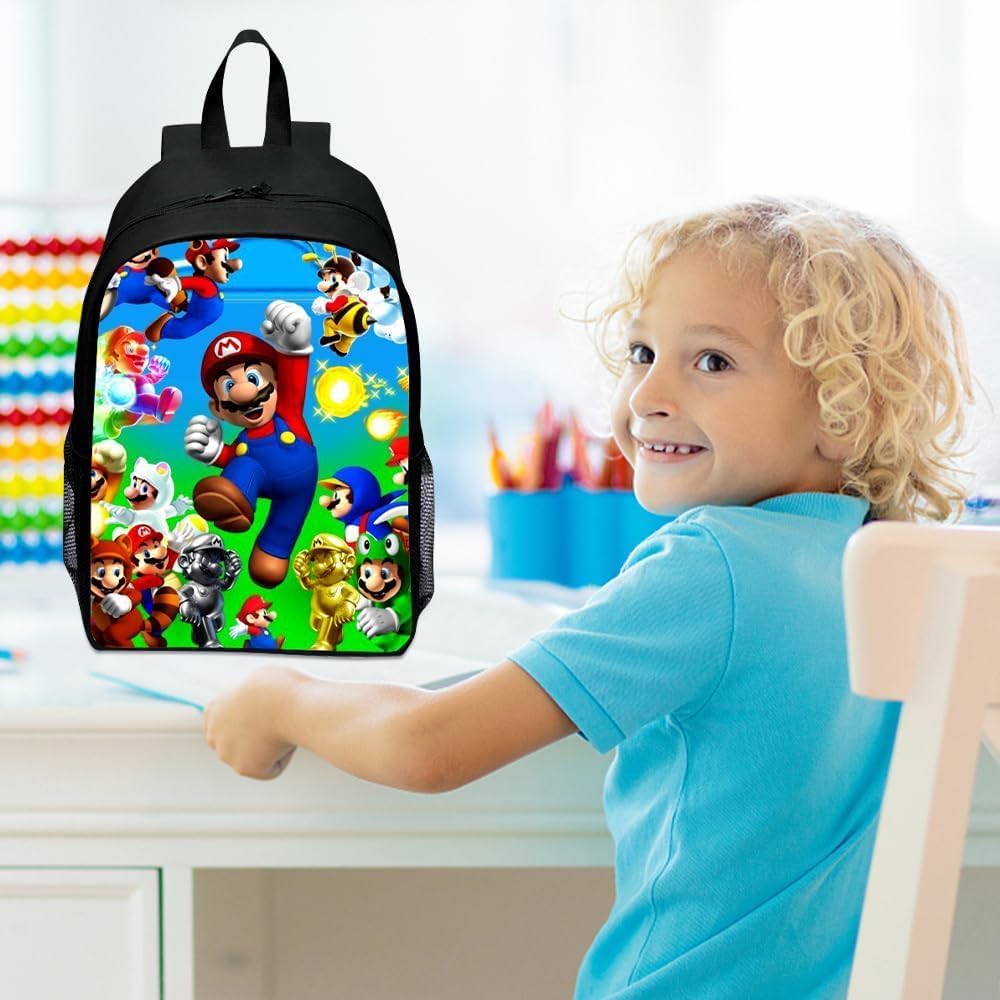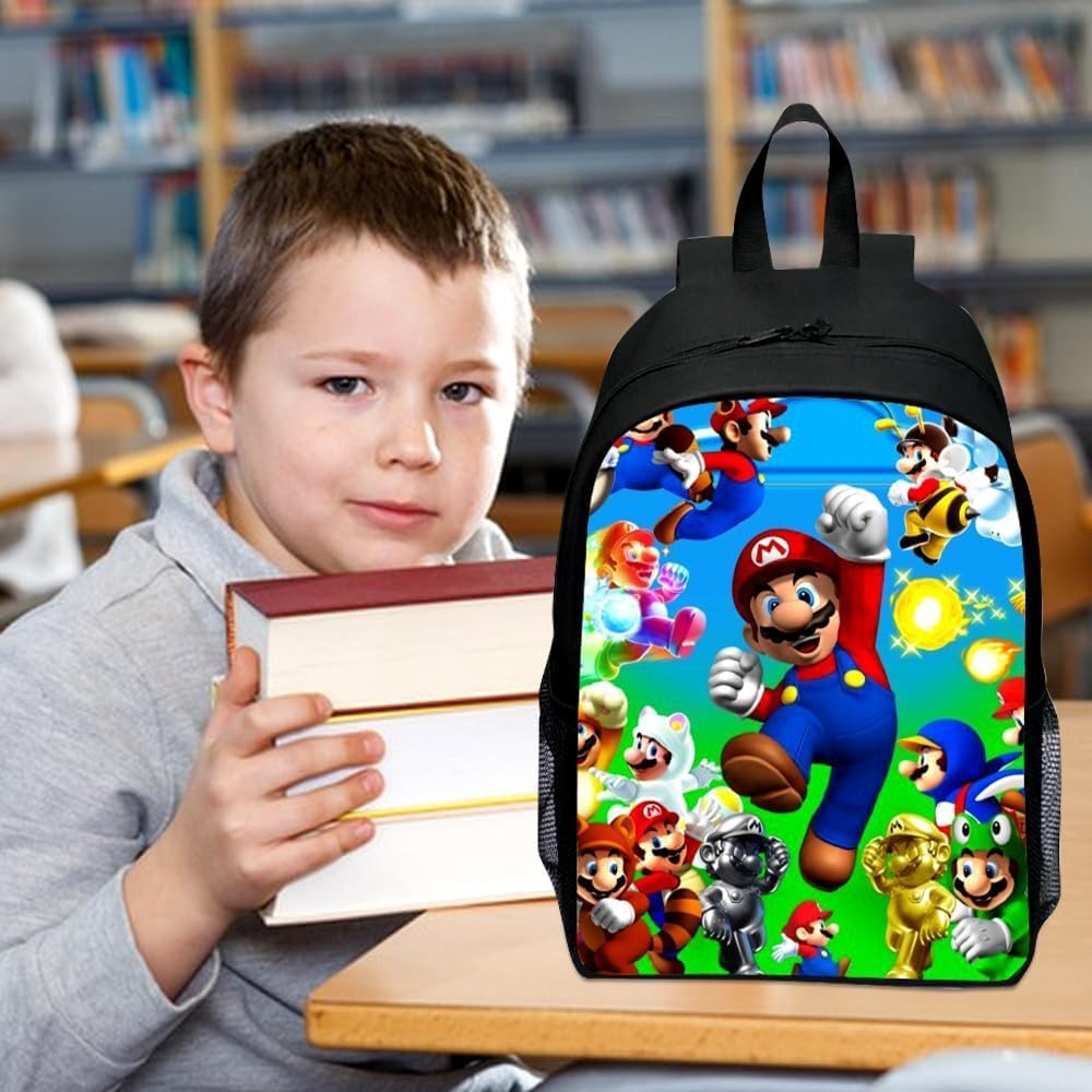 Sac à Dos Enfants, Super Bros Sac à Dos, Réglable Sac à Doss Scolaire pour Cartoon, Sac à Doss Décontracté Grande Capacité, Convient Garçon Fille à L’école, en Plein Air